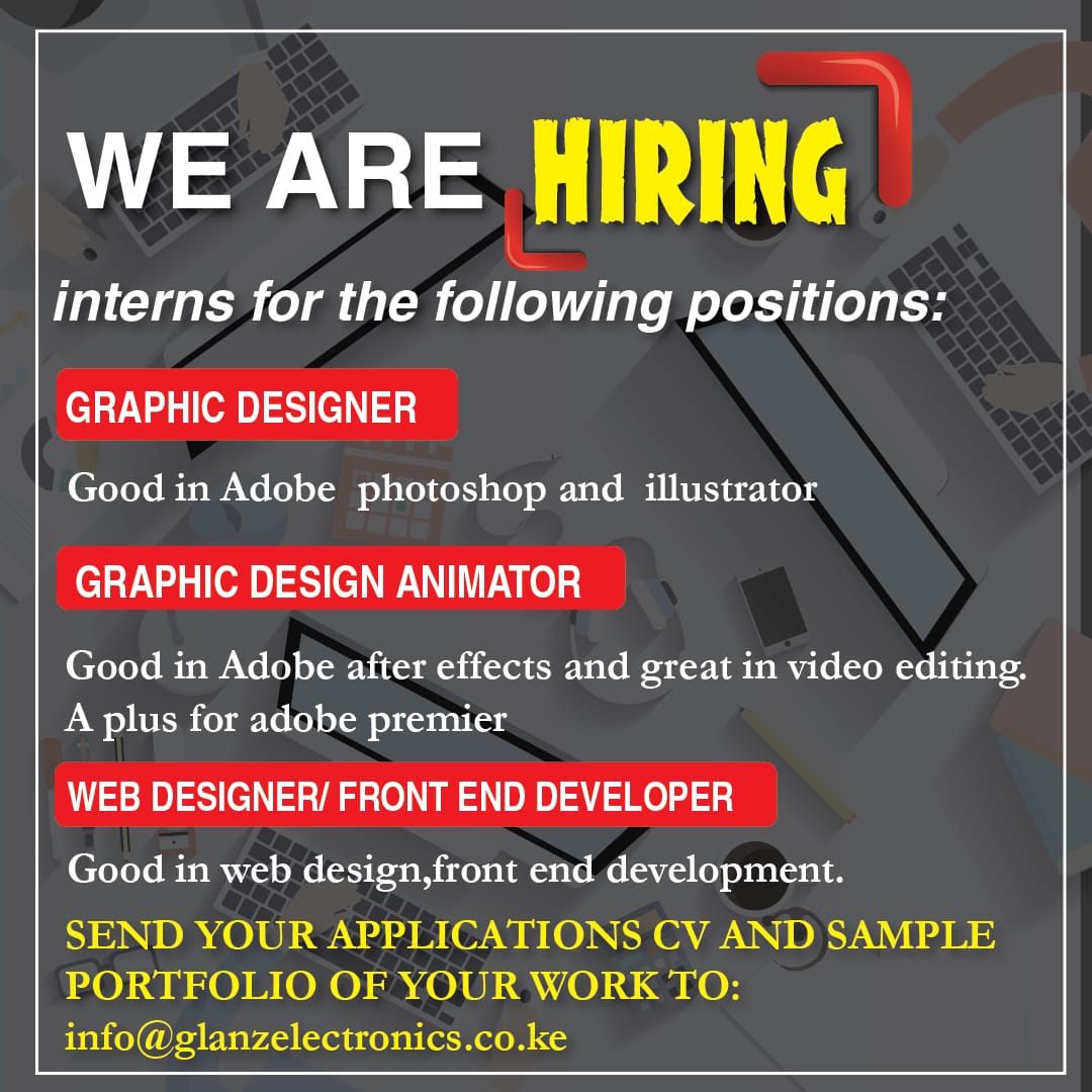 Email your application CV and work portfolio to info@glanzelectronics.co.ke