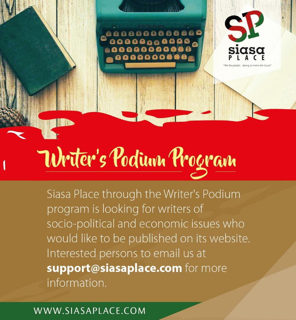 Writers Podium at @siasaplace Is looking for writers on socio-political & economic issues , if interested email support@siasaplace.com
